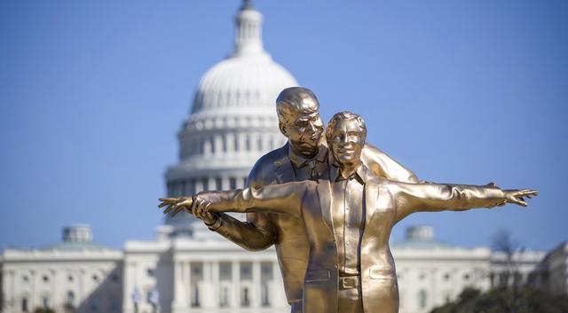 阿灵顿的史蒂夫·弗莱肯斯坦与浑家在国度广场分布庆祝成婚36周年。他也以为雕像的存在自己令东谈主饱读吹。